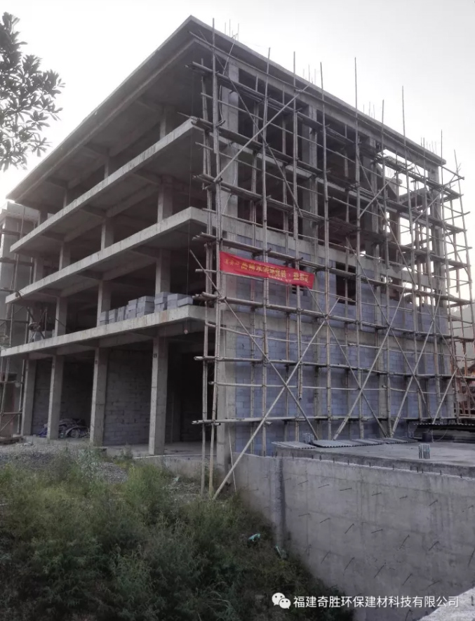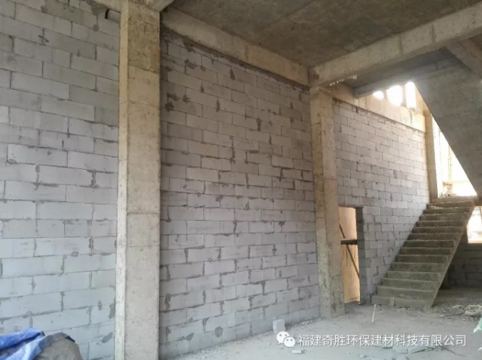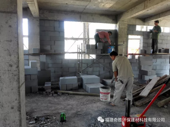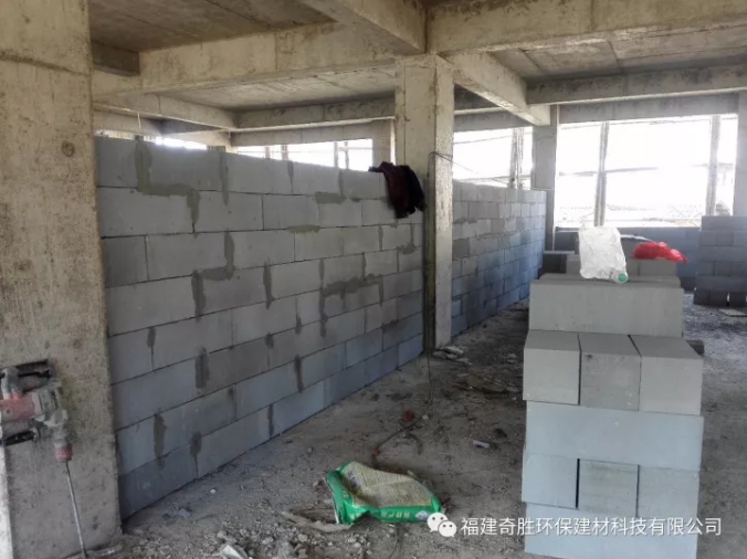 一、框架搭建好后,外墻直接用巖安牌高精加砌磚砌筑(厚度20cm)